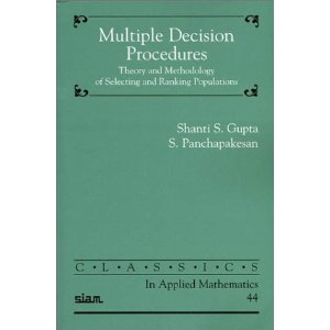Multiple Decision Procedures: Theory and Methodology of Selecting and Ranking Populations (Classics in Applied Mathematics) Paperback: 573 pages, Society for Industrial Mathematics; Revised edition (December 2002) |