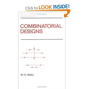 Introduction to Combinatorial Designs, Second Edition (Discrete Mathematics and Its Applications) Hardcover: 328 pages, Chapman and Hall/CRC, 2 edition (May 2007)